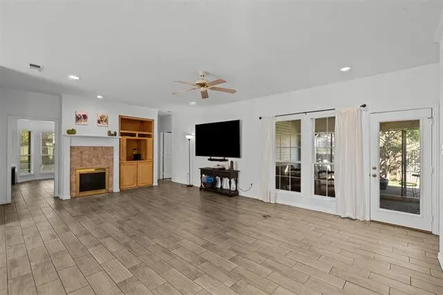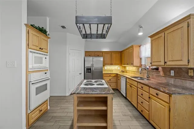 Come see this home! Great location with easy access to all Fort Worth freeways. The floorplan is ideal with the kitchen area being large with plenty of cabinets, lots of counter top space and a see through fireplace to the living room. This property has good bones! The roof was replaced January of 2024 and the AC was replaced September of 2023. There is newer wood tile flooring in throughout the main living area and newer tile in the primary bath. In addition, the garage is very oversized and includes a storage closet. It is nestled in a wonderful, established community with walking trails and green space. This all brick, one story home with mature trees boasts two primary bedrooms, or the second primary room could serve as a mother in law suite, a play room, an additional living room, a large office, or whatever you need it to be. Enjoy the outside in the screened in porch and adjacent patio. The large backyard is private and is big enough to add a pool, or play equipment. The beautiful trees provide ample shade, and there is a large sunny section in the yard too, the best of both worlds.