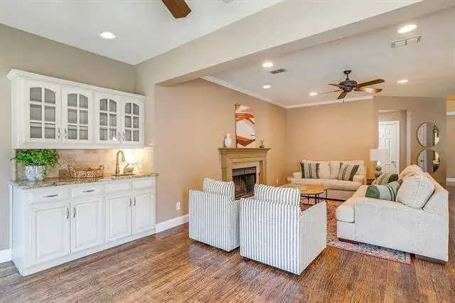 Built-in Wine Cooler, Decorative Lighting, Dry Bar, Eat-in Kitchen, Flat Screen Wiring, Granite Counters, High Speed Internet Available, Kitchen Island, Natural Woodwork, Open Floorplan, Pantry