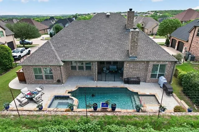 STUNNING, SOPHISTICATED AND COMFORT BEST DESCRIBES THIS EXQUISITE PROPERTY NESTLED IN A FABULOUS WEST FORT WORTH NEIGHBORHOOD! Featuring 4 spacious bedrooms and 2.1 baths, with many builder upgrades! Inviting curb appeal with lush landscaping and mature trees! Step inside to discover an open floor plan with a stone fireplace, high ceilings, arched doorways, crown moldings, hand-scraped wood flooring and an abundance of natural light that bathes every space! The spacious traditional kitchen is a culinary dream, equipped with built-in appliances, granite countertops, custom cabinetry, island work space, walk-in pantry, and serving bar making it perfect for both intimate gatherings and grand celebrations! Fabulous custom 4 inch plantation shutters have been added throughout the home. The primary suite is a true retreat featuring a luxurious layout with a spa-like ensuite bath complete with a soaking tub and separate walk-in shower. The additional bedrooms are generously sized, ensuring everyone enjoys their own private sanctuary within this remarkable home. Outside, an entertainer’s paradise awaits! The property boasts a covered living area with stone fireplace, stunning gunite pool and heated spa with water features and a propane fire bowl, providing the ideal setting for outdoor entertainment or dining under the Texas sky. This private backyard also provides a large grass area for pets & children to play as well. Not only does this home meet the highest standards of craft but it is also positioned in a desirable location that offers convenient access to Fort Worth’s top-tier amenities, fine dining, and cultural landmarks. A residence that embodies elegance with modern luxury, a rare gem in the competitive Fort Worth market! Recent Roof with Class 4 Hail Resident Shingles. You will love living in Lost Creek Estates! I can’t wait for you to see this home in person!