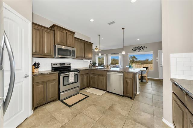 NO HOA and backs to a ranch! This gorgeous single-story home is tucked away on a quiet cul-de-sac in the highly desirable Northwest ISD, offering privacy and wide-open views you don’t often find. Enjoy peaceful outdoor living on the covered back patio with no neighbors directly behind you, along with a charming front patio featuring a hanging swing—perfect for morning coffee, evening sunsets, or relaxing at the end of the day. The home features well-maintained landscaping, a two-car garage, and abundant natural light throughout. Inside, you’ll find updated lighting fixtures and updated LVP flooring in the living room, fresh interior paint, formal dining area, and office. The formal dining room offers flexibility and can easily serve as a flex space or additional sitting area. The breakfast area features a picture window overlooking the ranch, enhancing the home’s serene setting. Schools are close by, with Hughes Elementary less than half a mile away, Tidwell Middle School, and Byron Nelson High School approximately 8.2 miles away. Enjoy easy access to Hwy 170 and I-35, plus walking trails that add to the home’s ideal location.