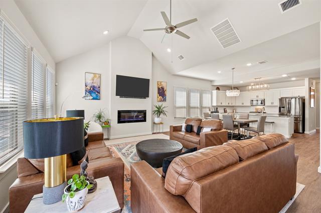 Welcome to this stunning home built in 2023 that perfectly blends modern design, comfort and convenience. Located in the highly desirable Northwest ISD, this beautifully maintained property offers an ideal layout for both everyday living and entertaining. Step inside to discover a bright, open-concept floorplan featuring luxury vinyl flooring, abundant natural light, and stylish finishes throughout. Gorgeous kitchen offers quartz countertops, gas range, stainless steel appliances, farmhouse sink, and a large island. THe primary suite is located downstairs, offering privacy and comfort along with a custom closet designed for optimal organization. Additional bedroom located on the first floor currently used as a home office, perfect for remote work or guest accommodations. Upstairs, you’ll find two spacious bedrooms and a large game room, providing plenty of space for relaxation, entrtainment, or a play area. Step outside to enjoy the extended covered back patio, ideal for outdoor entertaining, or simply unwinding in your backyard retreat. Conveniently located near shopping, dining, with a community pool at the end of the street just a short walk away. This move-in ready home offers modern living in a fantastic location sitting on an oversized lot with a 3 car garage. Don’t miss the opportunity to make it yours!