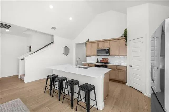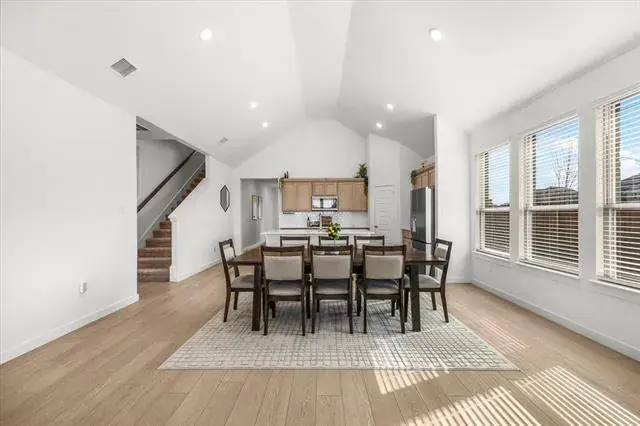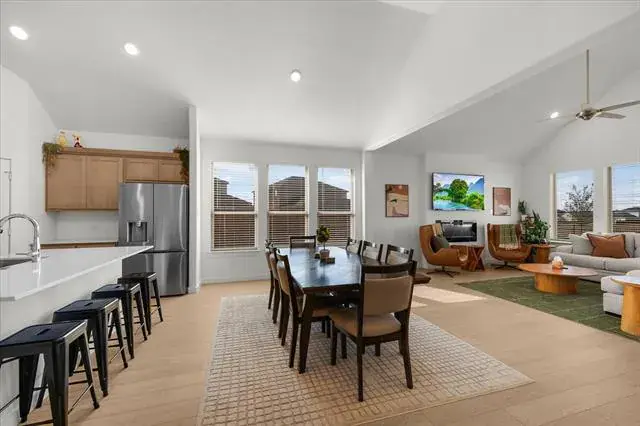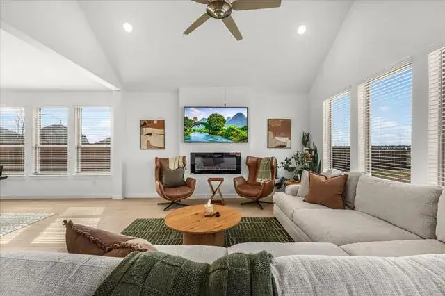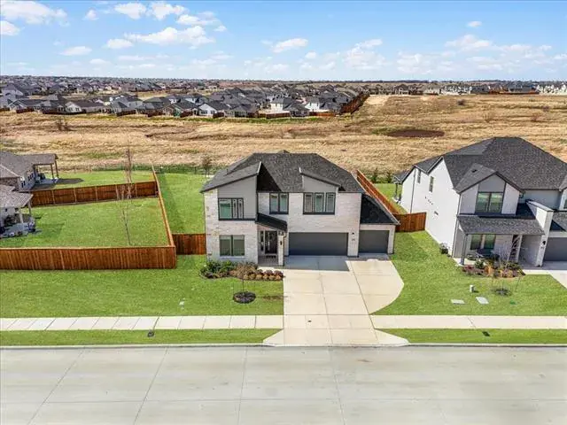 Welcome to this beautifully designed home offering modern comfort, thoughtful upgrades, and an unbeatable location in one of Haslet’s fastest-growing areas. Situated in a quiet neighborhood known for its friendly neighbors and peaceful atmosphere, this property combines space, style, and convenience. Step inside to soaring vaulted ceilings and an open-concept layout filled with natural light. The spacious kitchen is the heart of the home, featuring a large island with seating, stainless steel appliances, abundant cabinetry, and seamless flow into the dining and living areas. The inviting living room showcases a sleek fireplace, oversized windows, and plenty of space to gather. The primary suite offers a private retreat with generous proportions, plush carpet, and an en-suite bath complete with dual sinks, a large walk-in shower, and ample storage. Upstairs, you’ll find additional living space perfect for a game room, play room, or second lounge area. Outside, enjoy one of the home’s standout features — a large backyard with no rear neighbors, backing to open greenspace. Whether you envision a pool, outdoor kitchen, garden, or play area, there’s room to bring it to life. The covered patio makes outdoor living comfortable year-round. Car enthusiasts and truck owners will especially appreciate the upgraded garage featuring epoxy flooring and an extended-length second bay that easily accommodates a full-size truck — a rare find now that 3-car garages are no longer being built here! Even better, the location offers exciting growth and convenience — a new elementary school and new Kroger are currently being built right across from the neighborhood, adding long-term value and everyday ease! This home truly delivers the perfect balance of community charm, modern design, and future-forward location. Schedule your showing today!