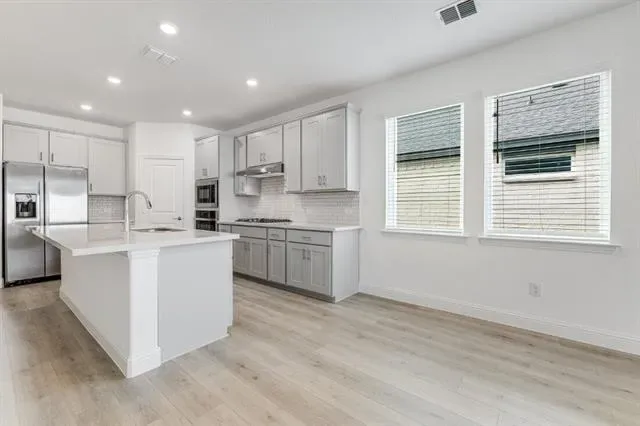 What''s Special: Two Bedrooms Down – Flat Lot – Large Game Room – Large Kitchen Island. New Construction – May Completion! Built by Taylor Morrison, America''s Most Trusted Home Builder. Welcome to the Lunaria at 1421 Mustang Canyon Drive in Madero! This bright two-story home features an airy great room with a pop-up ceiling that flows beautifully into the dining area and kitchen, creating an ideal space for everyday living and gatherings. The kitchen offers a spacious island, pantry, and nearby storage, while the covered patio extends the living space outdoors for relaxing evenings. A serene primary suite on the main level includes a well-appointed bath and walk-in closet, and a flexible room near the entry adds versatility for work or hobbies. Upstairs, a generous game room connects three secondary bedrooms with walk-in closets and smart storage throughout. There’s so much to love about Madero in Fort Worth. Set on spacious lots with winding streetscapes, the community feels open and inviting. Planned amenities include open-air centers, sports courts, a resort-style pool, lush trails, and future retail. With no MUD or PID taxes, you’ll have even more freedom to enjoy all Fort Worth has to offer. Additional Highlights Include: gourmet kitchen which includes the 5-burner gas cooktop, built in oven and microwave, beautiful quartz countertops, and large kitchen island, covered patio with gas drop, 8 ft. front door with glass, and RevWood flooring. Photos are for representative purposes only. MLS#21248981