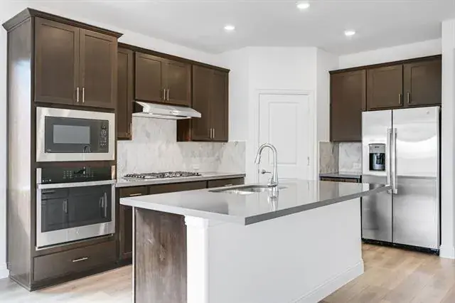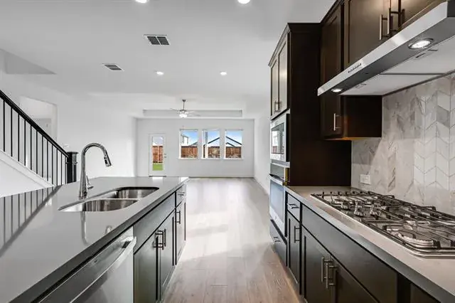What''s special: Game Room – Flat Lot – 5th Bedroom – West Facing Lot. New Construction – Ready Now! Built by Taylor Morrison, America''s Most Trusted Homebuilder. Welcome to the Verbena at 14908 Hierba Mora Drive in Madero. This stunning new home greets you with a welcoming foyer that opens into the kitchen, great room, and dining area, perfect for gathering and entertaining. The kitchen features a large island with quartz countertops, premium appliances including a 5-burner cooktop, built-in oven, and microwave, and plenty of space for culinary creativity. RevWood flooring flows throughout the main living spaces, while upgraded ceramic tiles add elegance and durability in key areas. The great room connects seamlessly to a covered patio, creating an ideal space for indoor-outdoor living. The main-level primary suite is tucked at the back of the home and includes a spa-inspired en-suite bath and spacious walk-in closet. A secondary bedroom and full bath are located off the foyer, while upstairs you’ll find a game room overlooking the entry, three additional bedrooms, all with walk-in closets, and a full bath. Madero in Fort Worth, TX offers an open, uncrowded feel with expansive green spaces and thoughtful home placement. Planned amenities include open-air centers, sports courts, a resort-style pool, lush walking trails, and neighborhood retail. Plus, with no MUD or PID taxes, you’ll have even more freedom to explore Fort Worth’s museums, theaters, music venues, and more. Additional Highlights Include: Covered patio, pop-up ceilings at the primary suite and great room, 8'' front door, and vent hood. MLS#21120335
