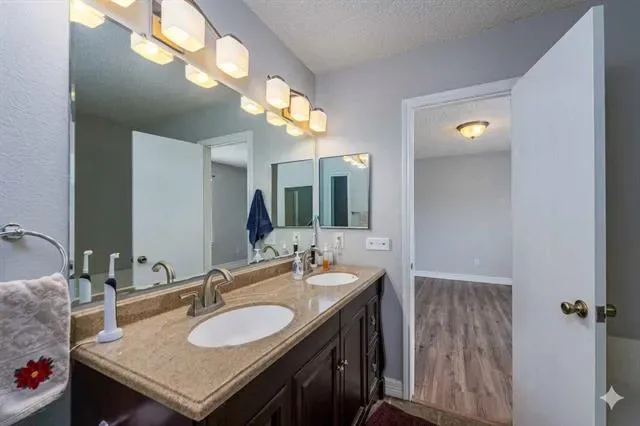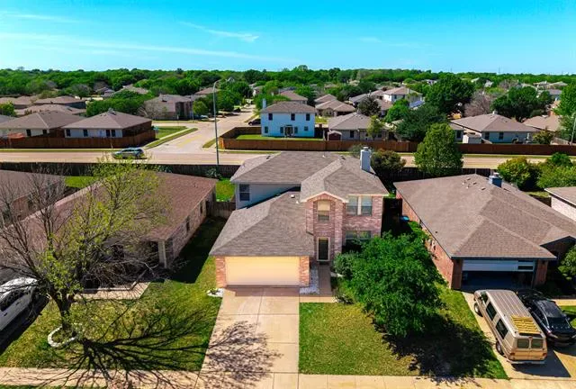 Upstairs, three additional bedrooms, a full bath, and secondary living area provide ample space for children, guests, or a home office setup. The fully fenced backyard creates a great space for outdoor fun, playtime, or weekend gatherings. Additional highlights include a 2-car garage and a dedicated laundry room for added convenience. Ideally situated near schools, parks, and shopping and within easy walking distance of Marine Creek Lake recreational area. This home combines comfort, functionality, and a location that supports an active family lifestyle, plus features direct access to community pools and courts.