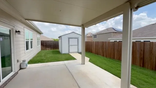 Enjoy Texas evenings on your covered patio, overlooking a landscaped yard that''s easy to maintain thanks to the built-in sprinkler system. A storage shed in the backyard provides extra space for tools and hobbies, while a two-car garage offers convenience and security.