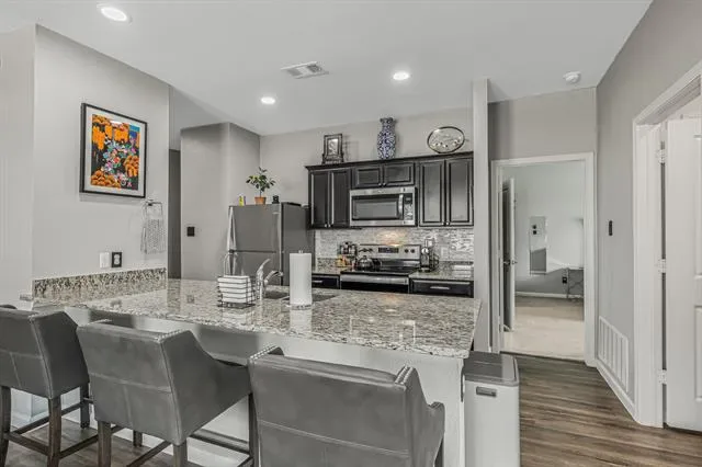 Immaculate, and move in ready 3 bed, 2 bath home with an open floor plan! This home offers luxury vinyl plank flooring throughout most of the home, a spacious living and dining area that flow into the kitchen with granite countertops, stainless steel appliances, and pantry. Private primary suite with newer carpet and walk-in closet. Multiple seller upgrades including the sprinkler system and added attic storage. Walking distance to park, playground, sports courts, trails, dog areas, greenbelts, and the library.