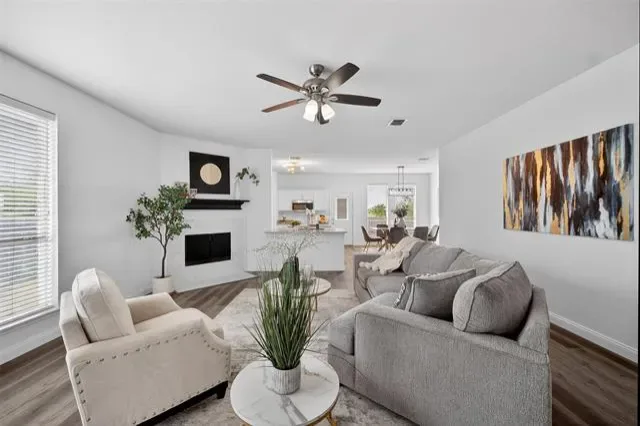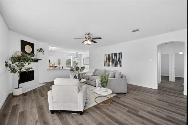Featuring 4 bedrooms and 2 bathrooms, this home offers a bright open-concept floorplan perfect for modern living. Enjoy a cozy den with fireplace, ideal for relaxing or entertaining. Recent updates include brand new roof, new water heater, new luxury vinyl plank flooring throughout and an upgraded kitchen with granite countertop, new stainless steel appliances and modern finishes, giving the home a fresh, move-in-ready feel.