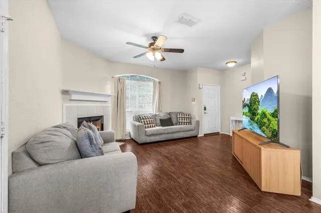 This charming 2 bedroom, 2 bath home features an open floor plan with spacious living area, wood like tile floors, and a cozy wood burning fireplace in your living room. Enjoy cooking and entertaining in your kitchen with beautiful white cabinets, and stainless appliances including a built in microwave and electric range. Relax in your spacious back yard with plenty of room for pets and entertaining. The home also has solar panels, which are paid off, lowering that monthly bill of yours. A short drive to main highways, tons of shopping and restaurants. Whether you are a first time buyer, downsizing, or looking for a solid investment, this property checks all of the boxes. Close to Parkview Elementary and Marine Creek Reservoir. Welcome Home!!