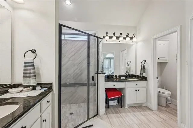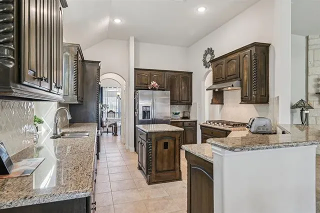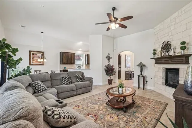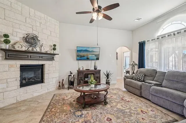 Beautiful single story home! Stunning curb appeal with side garage, stone accent, and glass with iron front door. Tile floors adorn the entry, halls, & family room. Stylish architecture with arches and tray ceilings. Gourmet kitchen with granite counters, center island, butlers pantry, 5 burner cooktop, and stainless appliances. Primary Bedroom with sitting area is perfect for king size furniture. Backyard with covered patio and pergola is perfect for outdoor living & entertaining. This home is a MUST SEE!