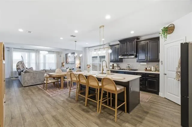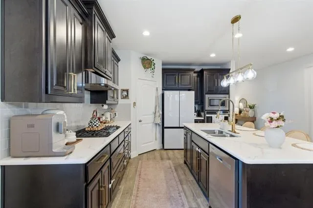 UPDATES include electric fireplace install, TV mount install, fan-chandelier replacements, garage floor epoxy install, garage interior paint, front yard flower bed and tree bed install, & back patio extension & decoration.