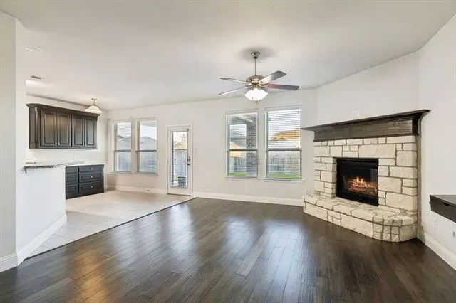 This impressive home offers luxury finishes, a spacious open floor plan, and exceptional flexibility with dual primary suites making it ideal for multigenerational living, guests, or simply choosing whether you want your primary retreat upstairs or down. The first primary suite is conveniently located on the main level, while the oversized upstairs primary suite feels like a true retreat, complete with a spa-like bath featuring a deep soaking tub. Two additional generously sized bedrooms share a full bath upstairs, along with two oversized flex rooms, giving everyone plenty of space to spread out, work, relax, or enjoy added privacy. One flex space is already prewired for sound and video, making it perfect for a media or game room. The kitchen is beautifully appointed with stainless steel appliances, elegant granite countertops, glass-front cabinetry, a walk-in pantry, and additional built-in cabinets in the breakfast nook, offering both style and exceptional storage. Large bedrooms throughout the home provide ample closet space and storage, ensuring comfort and functionality at every turn. Located in a serene and quiet neighborhood with outstanding amenities, residents enjoy access to a community pool, parks, playgrounds, and walking and jogging trails. The home is within walking distance to the elementary school and the Fort Worth Public Library, and just 5 minutes from major grocery stores, restaurants, and shopping. Commuters will appreciate being approximately 20 minutes to downtown Fort Worth and 30 minutes to DFW International Airport. Zoned to a fantastic school network, this home truly offers the perfect blend of space, convenience, and lifestyle.