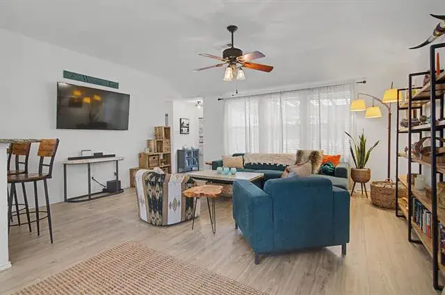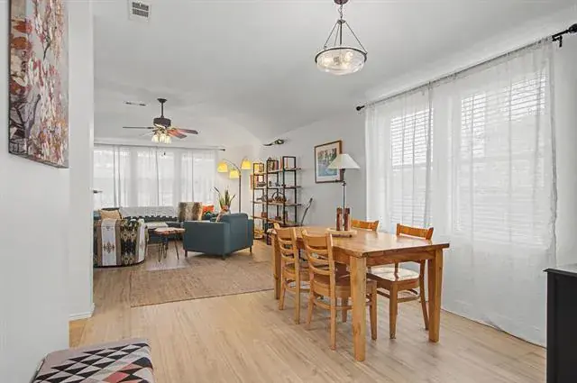 Welcome to your move-in ready, like-new single-story home in a wonderful neighborhood! This charming 3-bed, 2-bath residence has been thoughtfully updated and is ready for you to enjoy. The bright, welcoming kitchen makes meal prep a joy, and the large family and dining area makes entertaining a breeze. Beautiful new laminate, carpet, and tile flooring flow throughout, while refinished kitchen cabinets with updated hardware and modern decorative lighting add style and function. Recent upgrades include a newer HVAC system, water heater, and dishwasher, bringing peace of mind and everyday convenience. Step outside to a huge backyard perfect for relaxing and entertaining under the pergola while enjoying apples and pears from your own fruit trees! The exceptional community amenities include a lake with a boat dock, park, pool, walking trails, picnic area with fire pits, and a community garden, everything you need to live your best life. With easy access to highways, shopping, and restaurants, you’re close to all the essentials and more. Don’t miss this opportunity to own this beautifully updated, move-in ready home. See transaction desk for all updates and amenities. This is as close to brand new as you can get.