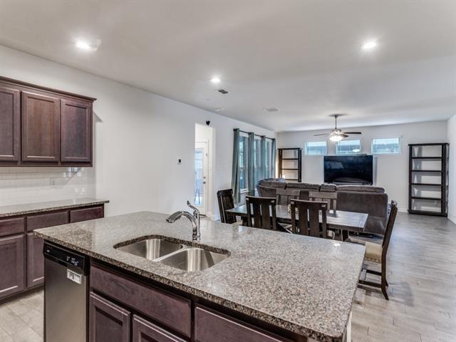 The price has been dropped $10K for this lovely home in Marine Creek Ranch, kept and updated to meet this most discerning buyer’s expectations, making this the craziest deal of the day! No, the week!! No, the month!!! Stunning stone accented front elevation greets your arrival, leading through the custom designed front door to the front foyer featuring your first glimpse of the wood look, easy-care tile flooring which leads you to the inviting great room and expansive dining area, perfect for family gatherings! The gourmet kitchen opens across a spacious breakfast bar-work island to the dining and family rooms and features granite c’tops, upper end SS appliances, an abundance of cabinet space and a walk in pantry to delight the family chef! The split primary suite downstairs features dual sinks, a glass enclosed stand up shower, a huge walk in closet and a soaking tub for those precious few moments of peaceful solitude. Upstairs is an oversized multi-use game-play-media room, three oversized secondary bedrooms plus a full bath to accommodate your growing family needs! Out back is an inviting covered patio with an extended canvas covered patio overlooking the large backyard perfect for the kids to run and play of for those Sunday afternoon BBQs!! Priced to sell and a short closing time is not a problem!!!