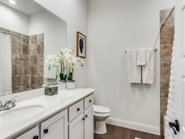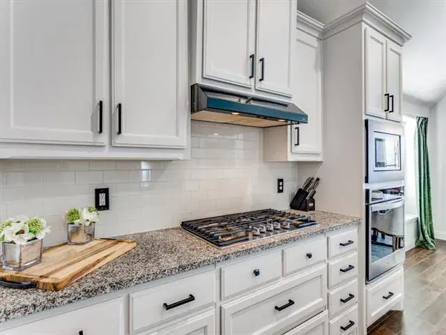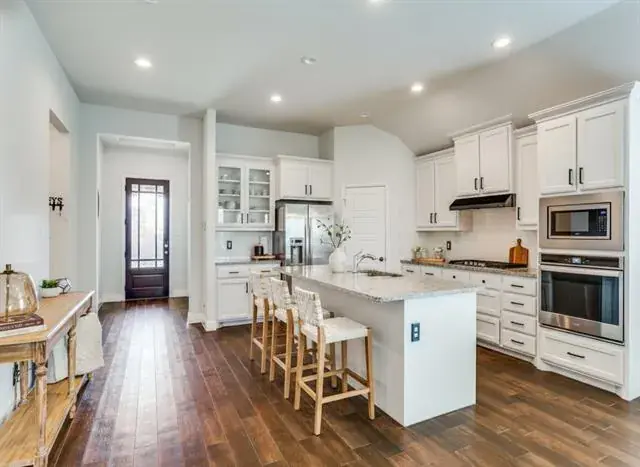 The chef’s kitchen is a standout feature, complete with a gas cooktop, sleek granite countertops, and stainless steel appliances. Whether you’re preparing everyday meals or hosting dinner parties, this kitchen is both stylish and functional. The ample counter space, cabinetry, and large pantry provide plenty of room for all your cooking essentials, making meal prep a breeze.