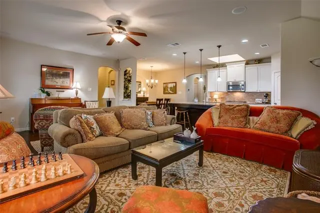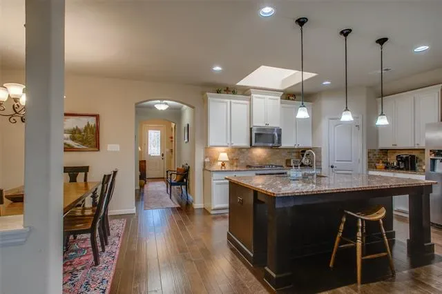 This beautifully upgraded 3-bedroom, 2-bath home in Marine Creek Ranch stands out with thoughtful enhancements, energy efficiency, and exceptional indoor-outdoor living. The open-concept layout is anchored by an oversized kitchen island, larger than most in the neighborhood, creating the perfect space for cooking, gathering, and entertaining.