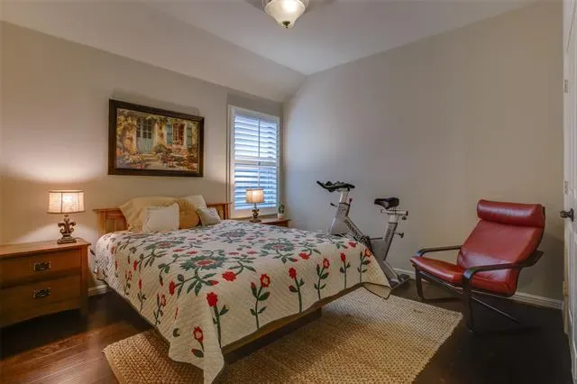 Engineered wood floors flow throughout the main living areas, complemented by tile in the bathrooms, while wood shutters on every window add timeless style, privacy, and natural light control. The spacious primary suite features an impressive walk-in closet with abundant storage.
