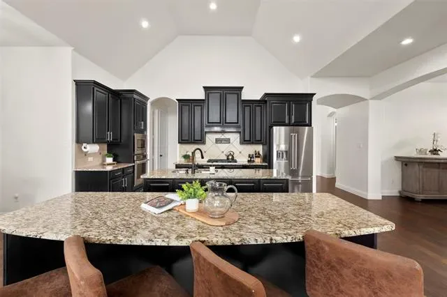 An absolute unicorn! Single story with mother-in-law suite, stunning double island kitchen, and so much more… From the moment you step through the door, this remarkable home tells a story of thoughtful design and effortless living. The grand rotunda entry welcomes you to soaring ceilings, lush floors, and attractive lighting. This floor plan is nothing short of extraordinary. A dedicated private office awaits — ideal for today''s work-from-home lifestyle. A generous mother-in-law suite with its own ensuite bath offers guests or family members a true retreat of their own. Four spacious bedrooms in total, all freshly painted and appointed with new luxury carpet (March 2026). At the heart of the home is a show-stopping kitchen designed for those who love to gather. Double islands anchor the space, surrounded by stunning cabinetry, granite countertops, and a high-end KitchenAid appliance suite including a Whirlpool built-in gas range. Gorgeous picture windows flood the space with natural light, and the open layout flows seamlessly into the formal dining room, breakfast nook, family room – an entertainer''s dream. Don''t miss the media room, perfect for movie nights, or binge watching your latest Netflix favorite! You''ll even find a wine closet tucked behind a beautiful iron door, perfectly sized to double as a second pantry, adding a touch of sophistication only this home can offer. The primary bedroom suite is the perfect haven, featuring a luxurious ensuite bath with separate vanities, soaking tub and a massive walk-in closet. Two additional bedrooms share a full bath appointed with a high-end personal therapeutic jacuzzi and spa shower comboStep outside to a large covered patio made for evening gatherings, and finish in the oversized two-car garage complete with epoxy flooring, custom built-ins, and abundant storage. Freshly updated, meticulously maintained, and one-of-a-kind. This is the home you''ve been waiting for! Check back for professional photos 3.26!