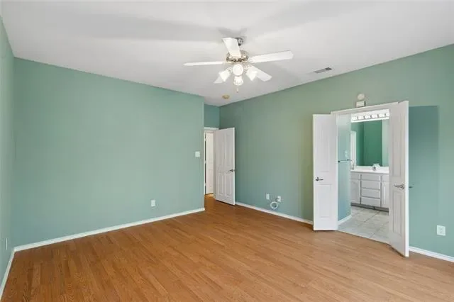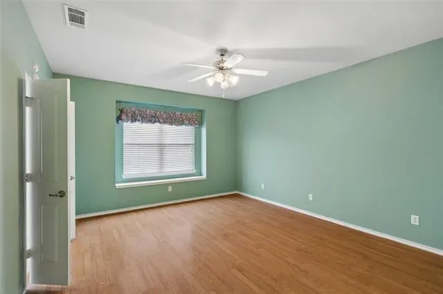 OPEN floor plan with window seats in breakfast area and primary bedroom. NO carpet, tile in kitchen and bathrooms, plus laminate through out home. Nice size back yard with greenbelt behind yard. Open patio, attractive covered front porch. Primary bathroom suite offers separate garden tub plus shower. Additional features include built-in shelves in living area, island kitchen, ceiling fans. Refrigerator, washer and dryer may remain. Seller to provide paint allowance with acceptable offer. Buyer and buyer realtor to verify all measurements, schools, property tax.