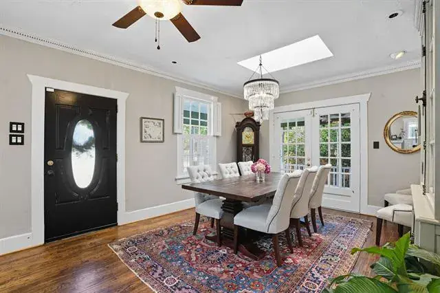 Welcome to 3817 Clarke Avenue, a beautifully preserved and thoughtfully updated Craftsman in one of Fort Worth’s most desirable locations. Just a short walk from the historic Bricks on Camp Bowie and minutes from the Cultural District and Downtown, this home offers the perfect blend of character, convenience, and comfort. Inside, you’ll find hand-scraped hardwood floors that have been recently refinished, bringing warmth and timeless appeal throughout the main level. The home offers three spacious living areas and two dining areas, ideal for both everyday living and large gatherings. The downstairs living room features a cozy fireplace and built in bar, creating the perfect space for entertaining. Two additional living rooms, located on the main floor, offer flexible options throughout. The updated kitchen boasts granite countertops, built-in cabinetry, and modern appliances, flowing seamlessly into the dining spaces. The private office is complete with built-in bookshelves, making it an excellent work from. home retreat. The primary suite, located on the main floor, includes a spacious bedroom and ensuite bath with dual sinks, separate shower, and soaking tub. Major updates include a rebuilt front porch, all-new ductwork in the attic, and energy-efficient spray foam insulation, both in the attic and above two additional bedrooms, ensuring year-round comfort. Ceiling fans have been added in all main living areas for enhanced efficiency. Outdoors, the entertainer’s back patio shines with decorative lighting and direct access to the living area with built-in bar, creating a seamless indoor outdoor lifestyle. With a large lot, mature landscaping, and a detached garage, this property has it all. The combination of charm, location, and updates makes this home a rare find in one of Fort Worth’s most sought after neighborhoods!