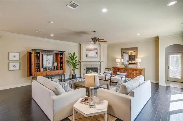 Experience comfort and style in this 4-bedroom, 3.5-bath, two-story home featuring 4,472 SF of thoughtfully designed living space. The downstairs primary suite offers a private retreat with walkout access to the back patio, a study with built-in bookshelves that conceal a secret door to the primary suite. Enjoy an open kitchen and living area with wood floors on the first story, perfect for gatherings and everyday living. The home’s exterior includes a welcoming front porch and a back patio, surrounded by an easy-to-maintain yard. High ceilings throughout the interior create an airy and welcoming atmosphere, while the upstairs offers a spacious family room, a separate media room, and a wet bar for entertaining. Located in a highly desirable neighborhood just half a block from the River Crest Country Club golf course, this home provides convenient access to Camp Bowie Boulevard and downtown Fort Worth. A two-car garage with alley access completes the property, offering both functionality and curb appeal. Discover a lifestyle that blends comfort, entertainment, and unique design elements in this exceptional home.