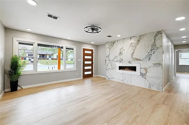 Welcome to this equisitely remodeled 3-bedroom, 2-bathroom residence in the heart of the River District close to the Trinity Trails. Thoughtfully updated and tastefully designed throughout, the home boasts high end features found in luixury homes. Home has a bright open-concept layout with two spacious living areas—perfect for both everyday living and hosting guests. Large windows allow natural light to fill the home, creating a warm and inviting atmosphere.Step outside to a beautiful outdoor deck that serves as an extension of the living space, ideal for entertaining, relaxing, or enjoying quiet evenings outdoors. The oversized newly fenced backyard offers privacy and functionality with ample space for gardening, outdoor activities, or future additions. Inside you will find a beautifully renovated interior with high-end finishes throughout, featuring new windows, designer tile and flooring, a stunning kitchen with stainless steel appliances, and updated modern lighting. Every detail has been thoughtfully upgraded for a stylish and sophisticated living experience.Enjoy an unbeatable location just minutes from schools, shopping, dining, nightlife, and the Cultural District. This home offers the perfect combination of style, comfort, and convenience in one of Fort Worth’s most desirable neighborhoods. Designed with discerning homeowners in mind, this property is perfect for those who value refined details and upscale designer grade finishes. As per appraiser, house is 1770 sqf plus 165 sqf for the third bedroom.