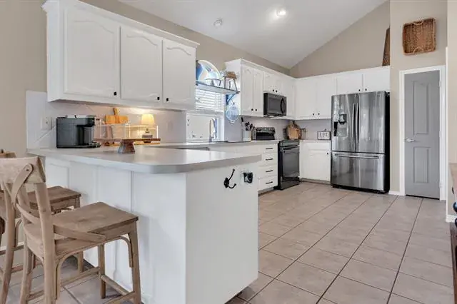 Welcome to this charming one-story, three-bedroom, two-bath home featuring a sought-after split-bedroom layout and stylish updates throughout. The seller’s incredible eye for design is evident in every detail—from the fresh paint, elegant wainscoting, and new wood fireplace surround to the perfectly chosen colors, textures, and finishes that accent the home. The vaulted ceilings, not always found in this floorplan, contribute to the spacious feeling in this home.