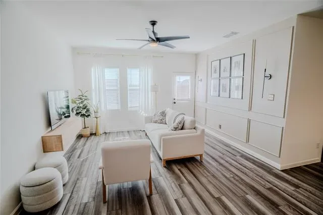 Barely lived in and truly better than new, this beautifully upgraded home shows like a model and is completely turn-key. Enjoy NO carpet throughout, modern black ceiling fans and black hardware, and a stunning custom accent wall in the living room that adds designer style and character.