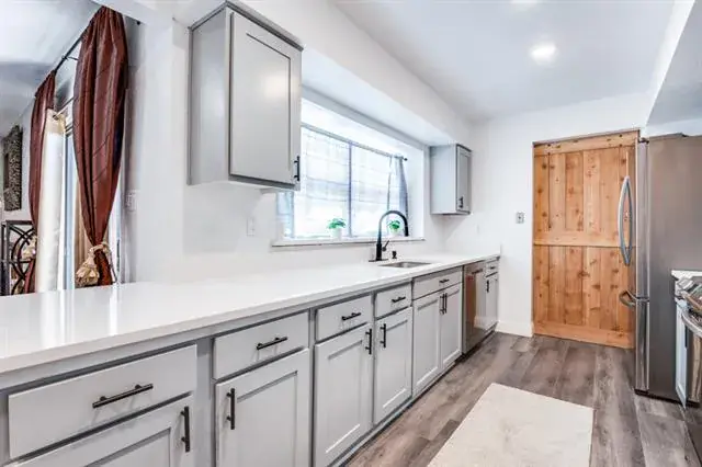 Prepare to be impressed. This spacious, recently renovated home blends contemporary design with rich rustic cedar accents inside and out. From the moment you enter, you’re welcomed by an open-concept layout featuring updated flooring throughout, a beautifully remodeled kitchen, and refreshed bathrooms designed with both style and functionality in mind. m The home offers four generously sized bedrooms, including a private primary suite that provides a comfortable retreat at the end of the day. Custom cedar details — from statement columns and ceiling treatments to trim and feature walls — add warmth, character, and craftsmanship rarely found at this price point. Best of all, there is no carpet anywhere, offering both modern appeal and easy maintenance. The finished garage creates flexible space for entertaining, hobbies, or secure parking. Step outside to your own private backyard resort. Enjoy a large pool, expansive patio with gazebo, bar-top seating, and a convenient pass-through window from the kitchen — ideal for hosting gatherings. A brand-new privacy fence completes the space, creating the perfect setting for relaxation or entertaining. Designed to impress and built for lasting enjoyment, this home delivers comfort, character, and exceptional entertaining space both inside and out.