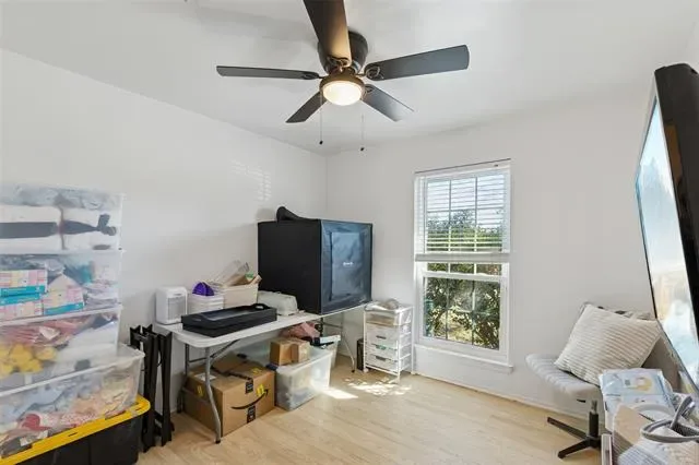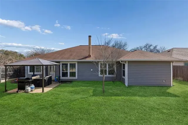 Outdoor living extends to a fenced backyard offering usable green space for recreation, gardening or future enhancements. The corner lot presence enhances curb appeal while maintaining neighborhood continuity in Fort Worth.