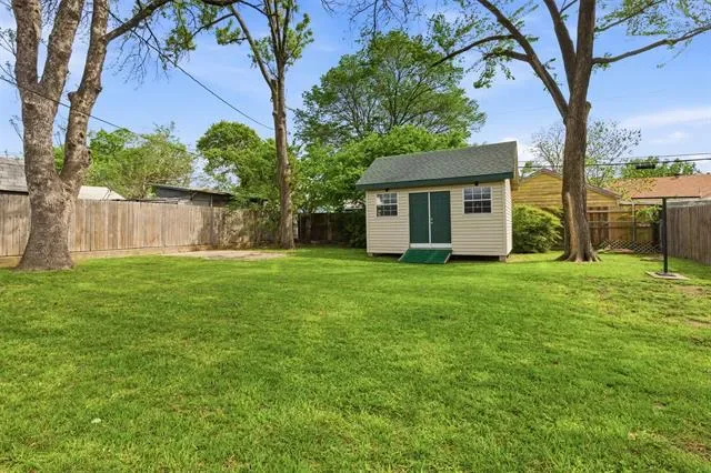 Located just minutes from downtown Fort Worth, this charming home offers convenient access to shopping, dining, and your favorite coffee spots. Upon entering, you’re welcomed by original wood flooring that adds a timeless sense of character and elegance throughout the space. The kitchen features ample counter space, shaker-style cabinetry, and a gas-burning stove—perfect for both everyday living and entertaining. Just off the kitchen, the converted garage provides a versatile flex space that can serve as an additional bedroom, home office, or second living area. The primary bedroom offers generous closet space, along with an additional closet in the bathroom complete with built-in drawers and shelving for added convenience. Step outside to a shaded backyard, ideal for grilling with friends or relaxing in a peaceful setting. A portable building with electricity adds even more functionality, making it perfect for storage or a workshop. Recent updates within the past 2 to 3 years include a new roof, gutters, added insulation, and professionally cleaned air ducts for added peace of mind. The roof features Class 4 Pinnacle Impact Shingles for enhanced durability against hail and high winds and may qualify for insurance discounts. The upgraded EnergySphere attic system includes a radiant barrier and non-settling blown-in insulation to improve energy efficiency and reduce HVAC load. Insulation and new gutters include a lifetime transferable warranty. Two of the three bedrooms have dropped ethernet cables for a hardwire fiber internet connection.