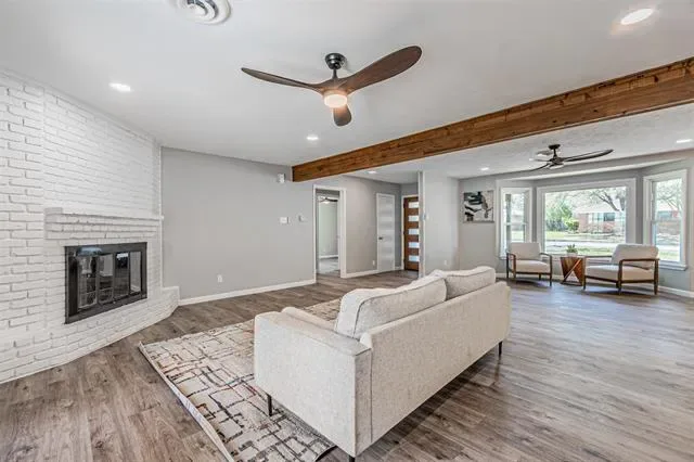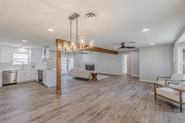 Welcome to your dream home! This fully updated 3-bedroom, 2 bath home is located on a large corner lot right next to city park and playground with sideway garage entrance. Great curb appeal with all New double-pane windows for energy efficiency. Through the new elegant front door, you’re welcomed by a spacious open floorplan features real cedar post and center beam. The well-appointed gourmet kitchen, complete with a spacious premium quartz island, all solid wood shaker cabinets with slow close, stainless-steel appliances, while the recessed lighting provides a warm ambiance. The eat-in kitchen area is perfect for family meals and gatherings. The primary suite offers a private ensuite bath, double vanity, wooden sliding door and a large walk-in shower. Other modern upgrades include Luxury waterproof LVP flooring throughout with no carpet, All new LED lights, all remote-controlled ceiling fans, New electric panel, and fresh paint throughout. Step outside to discover a large backyard with concrete patio. With the park and playground right across the street, this house is perfect for family with kids or grand kids, offering endless possibilities for outdoor activities.