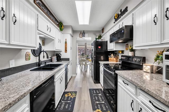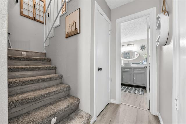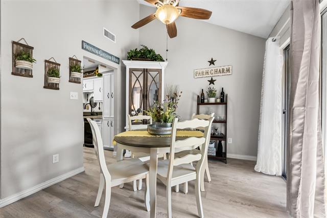 Ideally located just 10 minutes from Downtown Fort Worth on the east side, this beautifully updated townhome backs to the community’s tree-lined greenbelt with a seasonal creek, offering peaceful views and a tranquil setting – perfectly positioned between Fort Worth and Arlington. This compact in size, yet large in functionality and charm, townhome boasts an open-concept layout that seamlessly connects the living, kitchen, and dining areas. As you step inside, you’re greeted by an inviting living room with vaulted ceilings and a cozy fireplace, perfect for both family relaxation and entertaining guests. Prepare meals in the stylish and functional kitchen, featuring crisp white cabinetry that contrasts beautifully with the black fixtures and appliances. Just off the dining area, an upper balcony provides the perfect spot to savor your morning coffee while enjoying the serene views. A versatile space near the entry can easily function as a second dining area or home office. Privacy is not a concern, as both bedrooms are located on the lower level. The primary suite features a dedicated bath with separate vanities and direct access to a secluded patio. Comfortably sized, the secondary bedroom is near a full bath with a rustic-chic vanity and vessel sink. Community amenities include a clubhouse, sparkling pool, tennis courts, and scenic walking trails. Enjoy easy maintenance living as the HOA maintains the grounds. Prime location with easy access to Interstate 30, Highway 820, and a variety of shops, restaurants, recreation, and local attractions, including AT&'T Stadium, Globe Life Field, and the Fort Worth Stockyards.