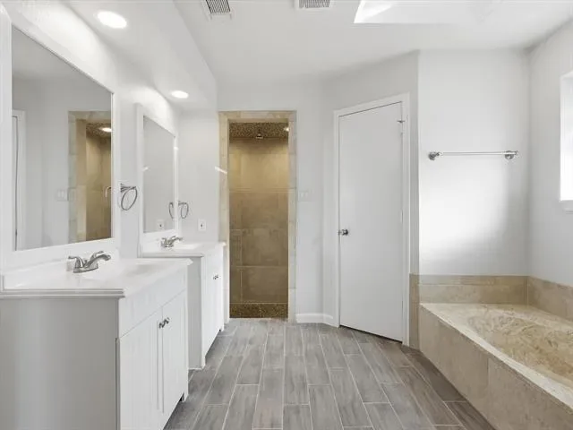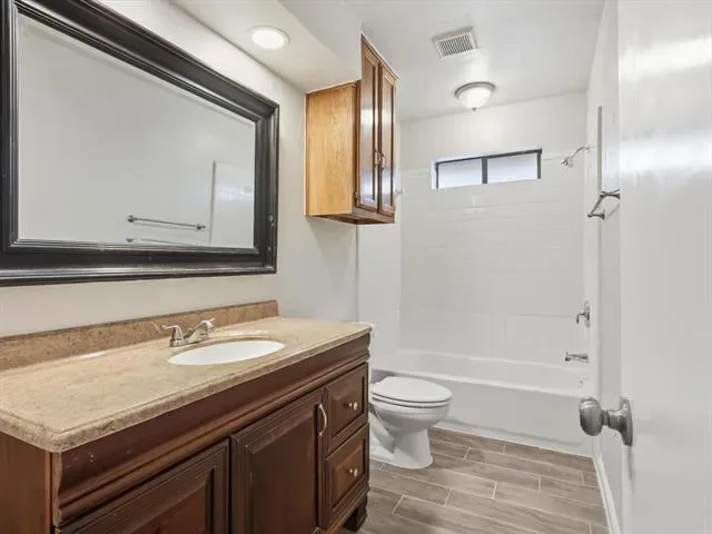 Situated on a quiet street, this updated 3-bedroom, 2-bath home offers comfort and space. The welcoming living room features a wood-burning fireplace, creating a cozy focal point for everyday living. Fresh neutral interior paint, wood-like tile flooring throughout the main areas, and granite countertops give the home a modern, refreshed feel. The kitchen is designed with versatility and style in mind, offering granite countertops, white cabinets, and stainless steel appliances. The split bedroom layout provides added privacy, with two secondary bedrooms separate from the oversized primary suite. The primary retreat includes dual vanities, walk in shower, a garden tub, and a walk-in closet. Step outside and sit under the covered patio while enjoying a large private backyard with plenty of room to relax, entertain, or enjoy outdoor activities. Conveniently located near parks, shopping, dining, and major roadways, this move-in-ready home delivers on location, updates, and livability. The roof is 1 year old.