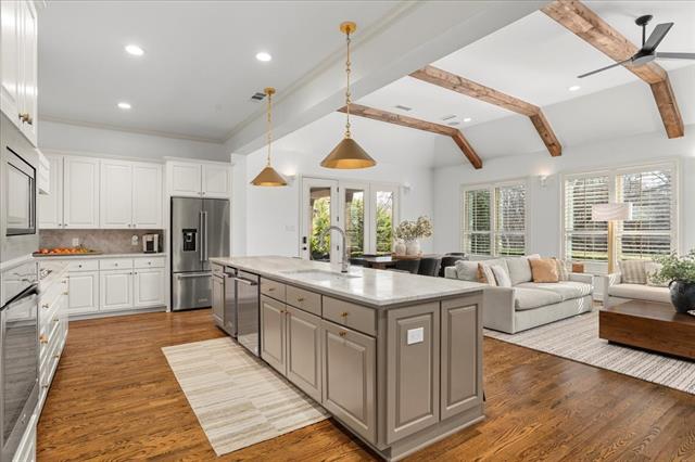 Built-in Features, Cable TV Available, Cathedral Ceiling(s), Decorative Lighting, Eat-in Kitchen, Flat Screen Wiring, Granite Counters, High Speed Internet Available, Kitchen Island, Natural Woodwork, Open Floorplan, Pantry, Sound System Wiring, Walk- In Closet(s)