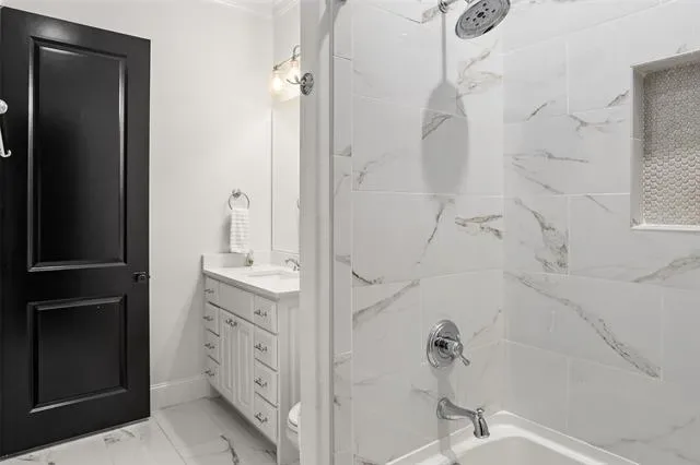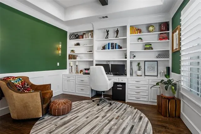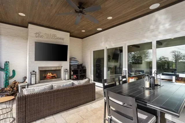 Resort style living in beautiful, guarded Mira Vista. Built by Glendarroch Homes in 2018, this home has everything! A grand foyer welcomes you inside with gorgeous hardwood floors and a stately staircase, flanked by a study with glass French doors and a large formal dining room. The spacious family room is open to the luxury kitchen with high-end stainless-steel appliances, exquisite quartz countertops, and a large butler pantry with built-in full size wine fridge. First floor primary suite with spa-like bathroom, double vanities, make-up counter, and 2 large walk-in closets. A secondary guest suite is also located on the first floor, with a large en-suite bathroom. Upstairs boasts a giant flex room with built-in sink, mini-fridge, and a second powder bath. Off the flex room is a large media room, perfect for watching movies and games! There are 2 large bedrooms on the second floor, both with their own en-suites and large walk-in closets. The backyard is its own oasis! A covered patio with retractable shades, a cozy, gas fireplace, large glass sliding doors, and a built-in grill. The sparkling pool and spa were built in 2021, with waterfall features and a fire pit! The driveway is gated, with extra space for the basketball goal or riding bikes, all on quiet cul-de-sac, backing up to the Mira Vista nature trail.