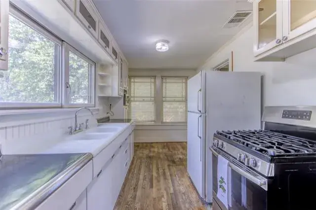 Welcome to 2220 W Rosedale Street S! This beautifully preserved 1918 Craftsman sits in the desirable Mistletoe Heights neighborhood and blends timeless charm with thoughtful updates. It has been lovingly maintained by the same owners for over twenty-five years. A spacious front porch sets the tone, inviting you to relax and enjoy the character this home offers. Inside, you’ll find gleaming original hardwood floors, abundant natural light, and a layout designed for both comfort and entertaining. Two generously sized bedrooms, each with their own en-suite bathrooms, two living areas, a formal dining room, and a charming kitchen, that’s perfect for hosting and everyday living. The spacious backyard features a storage shed and is surrounded by an 8-foot wooden privacy fence with an oversized iron gate for added seclusion and security. Other highlights include the original hardwood floors, original cedar plank siding, an amazing 5 foot Anderson window over the kitchen sink and so much more. Conveniently located just minutes from Downtown Fort Worth, the hospital district, the art district and museums, Trinity Trails, and all of the amazing restaurants and retail that Magnolia and South Main have to offer. This home truly feels like HOME – you do not want to miss it!