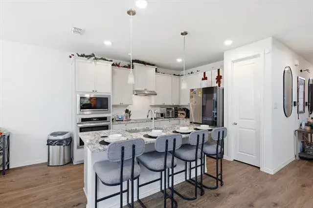 From the moment you step inside, this home feels open and welcoming. The foyer creates an immediate sense of space, gently guiding you toward the heart of the home where everyday life naturally unfolds. Sunlight pours in through the windows that line the living and breakfast areas, creating a bright, connected space where mornings feel calm and evenings feel relaxed. The flow of the main level makes it easy to gather without feeling crowded. Whether it’s shared meals, quiet nights in, or hosting friends, the open layout keeps everyone together while still offering room to breathe. Tucked away downstairs, the primary suite offers a comfortable retreat at the end of the day, with a spacious bath designed for unwinding and a walk-in closet that keeps everything organized and out of sight. Secondary bedrooms are thoughtfully positioned to offer flexibility for guests, work-from-home needs, or hobbies. Upstairs, the home opens again into a living space that adapts easily to your lifestyle. It’s the kind of space that becomes whatever you need it to be, from movie nights to homework afternoons to a second place to relax.