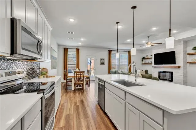Better than new and located in the desirable Mockingbird Estates community. This well maintained home sits on an oversized cul-de-sac lot backing to greenspace with no back yard neighbors! Incredible living space throughout with a functional and flexible layout. The primary bedroom suite is located on the main floor and features a private en-suite bath with dual sinks, large walk in closet, and separate linen closet. The main level also offers two living spaces, providing plenty of room for everyday living and entertaining. Upstairs you’ll find 3 additional bedrooms with one bedroom featuring an en-suite bath, ideal for guests. HUGE game room and dedicated media room equipped with projector screen, ceiling mounted projector, and entertainment center. Additional features include an electric fireplace, luxury vinyl plank flooring, large laundry room with extra storage, and energy efficiency with zoned electric heating and cooling systems. Incredible backyard featuring an extended covered patio and tons of open green space offering great outdoor living. Mockingbird Estates provides a country feel while being just 10 minutes from downtown Fort Worth. Ideally located with easy access to I-820 and I-30, and convenient access to shopping, dining, entertainment, Trinity Trails, parks, and other Fort Worth attractions. Situated within Fort Worth ISD, the property is a short distance from Loweryrd Elementary, Jean McClung Middle School, and Eastern Hills High School. Don’t miss out on this amazing opportunity!