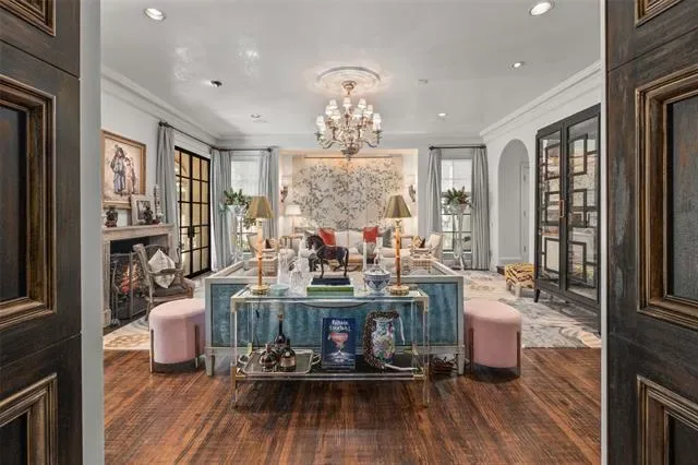 This stunning home is located in the heart of Monticello and offers five bedrooms, or four bedrooms plus an upstairs study. It features a luxurious primary suite downstairs and a second private primary suite upstairs. The home is thoughtfully designed for both everyday living and entertaining, with two spacious living areas, a light filled formal dining room, a wet bar with an icemaker, and a climate controlled wine closet. Exceptional outdoor living includes a fireplace, a pool and spa, and expansive covered patios that are perfect for year round gatherings. The home has been beautifully updated by the owner with interior design by Joseph Minton. It also includes an attached two car garage and an unbeatable Monticello location close to dining, shopping, and cultural amenities. The kitchen flooring has been removed in preparation for a remodel, creating a rare opportunity for buyers to customize finishes to their own style.