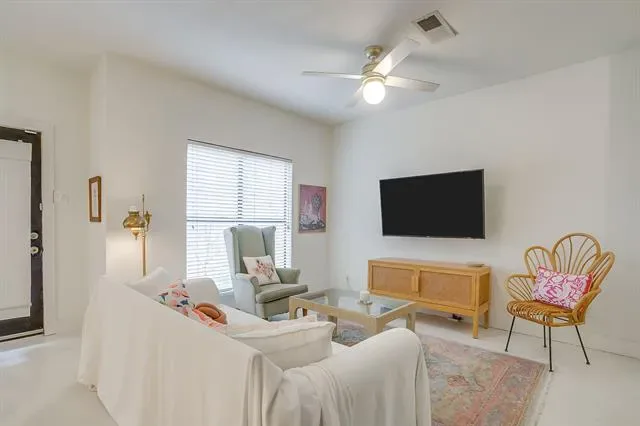 Welcome to 3415 Monticello Park Place, a beautifully updated 1-bedroom, 1-bath ground-floor condo located in the highly desirable Monticello neighborhood in Fort Worth’s Cultural District. Just minutes from West 7th, the Museum District, and the Historic Fort Worth Stockyards, this charming 806 sqft home offers comfort, style, and convenience in one of the city’s most sought-after areas. The bright and inviting living and dining area features high ceilings, a wood-burning fireplace, and built-in bookshelves, adding warmth and character to the space. The updated kitchen includes quartz countertops, handmade tile, custom cabinetry, and great storage, while the fully renovated bathroom features stylish finishes and thoughtful design. The spacious bedroom offers a large closet and room for a desk or workspace, making it perfect for remote work or flexible living. Additional highlights include a laundry closet with a full-size washer and dryer, excellent storage throughout, and a private ground-floor patio with easy pool access. Residents enjoy a gated community with shaded green spaces, a swimming pool, and an assigned covered carport space. Furniture is negotiable with an acceptable offer. Financing Note: Due to condominium guidelines, financing is limited to cash or conventional portfolio loans only (no FHA or VA).