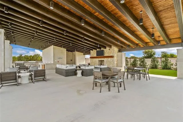 The resort-style amenities center is a haven for relaxation and recreation, with a pool, outdoor cabana, cooking area, fire pit, putting green, and courts for pickleball and bocce—all set against dramatic views. An outdoor pavilion nestled in a charming pecan orchard provides an idyllic setting for gatherings and leisurely afternoons.