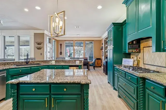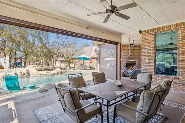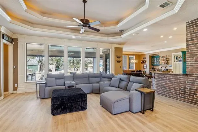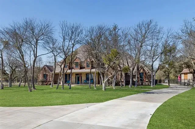 Stunning lakefront retreat on Eagle Mountain Lake with no HOA, situated on over 1.6 acres! This beautifully gated property welcomes you with a circular drive and exceptional curb appeal. The main home is beautifully updated and truly move in ready, featuring new flooring, fresh paint, a remodeled kitchen, and upgraded guest and primary bathrooms. All four bedrooms are conveniently located on the first floor along with a dedicated office space. Upstairs offers exceptional versatility with three flex rooms, currently used as a playroom, an additional living and movie room, and a separate office combined with a golf simulator space. Major system upgrades include a new HVAC, tankless water heater, propane tank, septic system improvements, and a replaced gate motor, providing peace of mind for years to come. Step outside to enjoy resort style living with a fully equipped outdoor kitchen, automated porch screens, putting green, and permanent exterior LED lighting. Additional conveniences include LeafFilter gutters and an EV charging station. Walk down to your private boat slip and enjoy effortless access to Eagle Mountain Lake. The newly completed guest house adds incredible flexibility, complete with a private bedroom, full bathroom, laundry room, and a spacious open concept living area with kitchen. Just outside, a dedicated game room space makes this setup ideal for entertaining guests or multi generational living. Conveniently located near everything Fort Worth has to offer and zoned for the new Eagle Mountain High School, this exceptional property blends luxury, comfort, and an unbeatable lake lifestyle.