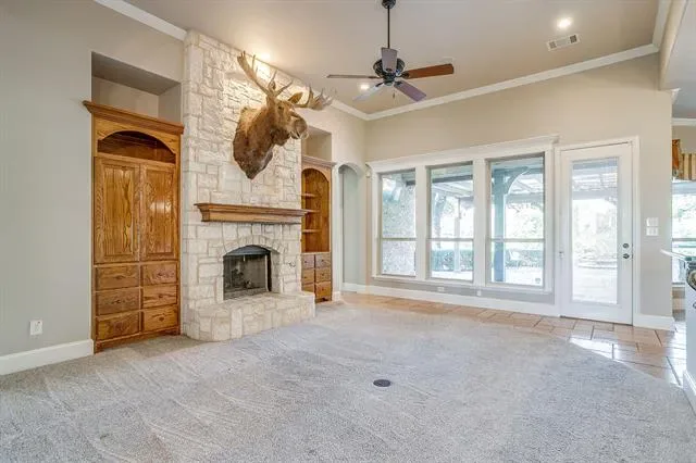 Luxurious ranch style home set upon over an acre and a half on Eagle Mountain Lake! This elegant 3-bedroom, 3.5-bathroom ranch-style residence is a masterpiece of comfort and style, designed for those who appreciate the finer things in life. Upon entering, you''ll be greeted by vaulted ceilings that elevate the spacious living areas adorned with exquisite travertine and wood flooring, and built in cabinets throughout. The gourmet island kitchen, with its granite countertops and gorgeous wood cabinets, is a chef''s delight. The office equipped with built-in cabinets is ideal for working from home. For those who revel in entertainment, this home is your haven. A game room with wet bar and a media room ensure endless amusement. Step outside to find your private paradise: a saltwater stone pool with a spa and waterfall, enveloped by a sprawling patio. Under a charming cedar arbor, the outdoor kitchen with a commercial grill awaits your culinary creations, while the fire pit and gazebo beckon for tranquil evenings under the stars. The master suite offers a Greek-style marble sanctuary with his and hers sinks and a massive walk-in closet —a perfect retreat at day''s end. Approximately 25 ft of water frontage with lake access!