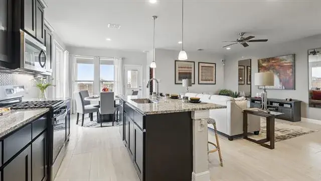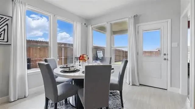 Stunning new D.R. Horton home in the Morningstar community located in highly sought-after Aledo ISD!! The Portales floorplan, Elevation J with an estimated spring completion, offers a thoughtfully designed single-story layout featuring 4 bedrooms, 2 bathrooms, and a 2-car garage, ideal for comfortable everyday living. The open-concept design connects the spacious family room with the dining area and modern kitchen, creating an inviting space for gatherings and entertaining. The kitchen is equipped with 42” upper cabinets with crown molding, quartz countertops, a ceramic tile backsplash, stainless steel appliances, and a gas range, along with a pantry for added storage. Luxury vinyl plank flooring extends throughout the main living areas, providing durability and style. The private primary suite includes a well-appointed en-suite bath and a generous walk-in closet, while three secondary bedrooms offer flexibility for family, guests, or a home office. A covered patio enhances outdoor living, and thoughtful design details, modern finishes, and energy-efficient construction complete this impressive home. Morningstar residents enjoy resort-style pools, playgrounds, parks, a dog park, and scenic walking trails.