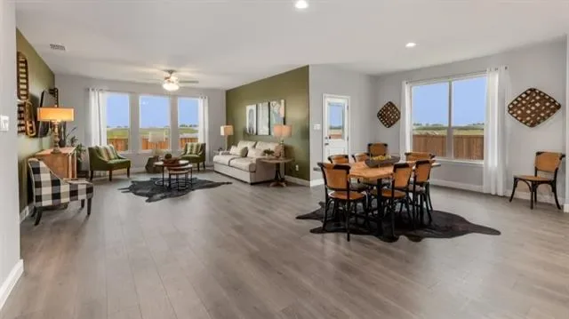 Brand-new D.R. Horton home in the Morningstar community located in highly sought-after Aledo ISD! The Crownpoint floorplan, Elevation G with a quick estimated Winter completion, offers a well-designed single-story layout featuring 4 bedrooms, 2 bathrooms, and a 2-car garage, with flexible living spaces ideal for today’s lifestyle. The open-concept design connects the spacious family room to the dining area and modern kitchen, creating an inviting space for everyday living and entertaining. The kitchen is equipped with 42” upper cabinets with crown molding, quartz countertops, a ceramic tile backsplash, stainless steel appliances, and a gas range, along with a pantry for added storage. Luxury vinyl plank flooring extends throughout the main living areas, providing both durability and style. The private primary suite includes a well-appointed en-suite bath and walk-in closet, while three secondary bedroom-one of which may be used as a study or flex spac-offer versatility for family, guests, or a home office. A covered patio enhances outdoor living, and thoughtful design details, modern finishes, and energy-efficient construction complete this impressive home. Morningstar residents enjoy resort-style pools, playgrounds, parks, a dog park, and scenic walking trails.