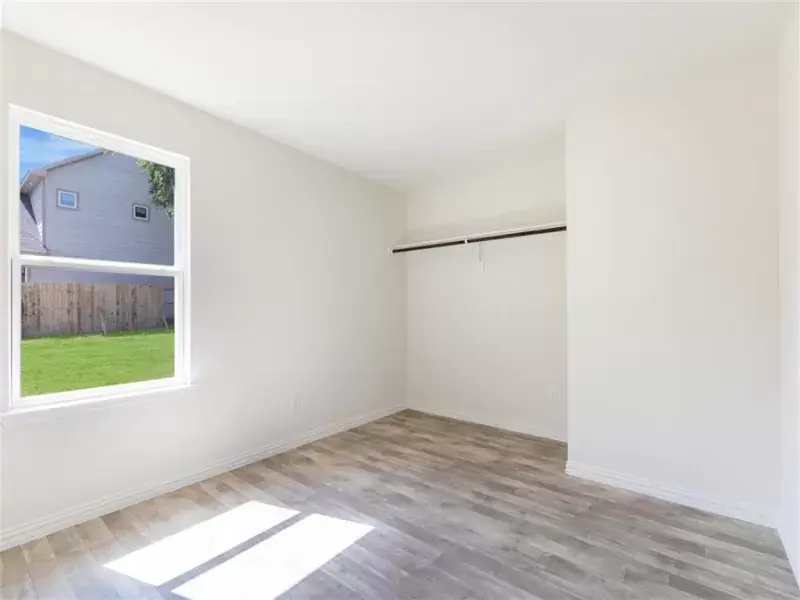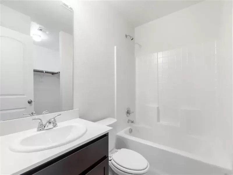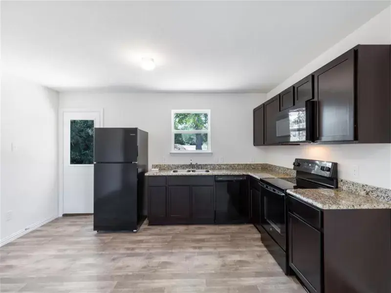 3 bedrooms; 2 bathrooms; 2 car garage; two motion exterior floodlights; low E insulated glass windows with screens; weather stripping on all exterior doors; smooth two square 6ft interior doors; 3.25 in baseboard moulding; 30in flat panel kitchen cabinets; vinyl flooring; 50-gallon electric water heater; programmable smart thermostat; keyless smart locks; granite countertops; microwave; electric range; energy-efficient dishwasher; refrigerator; 50-50 stainless steel kitchen sink.