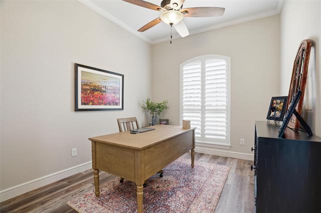 A private office just off the living area provides the perfect space for working from home or managing daily tasks.