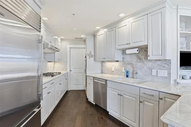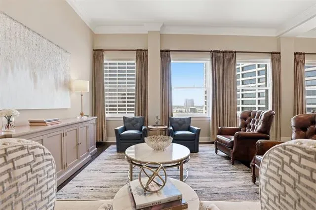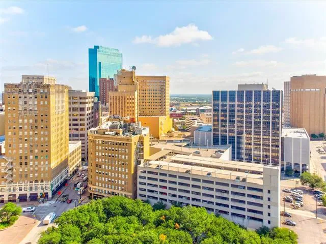 This exceptional residence combines historic charm, refined updates and an unbeatable location in the heart of Fort Worth. Open spaces filled with light showcasing spectacular sunsets and city vistas. Residence #1005 in the historic Neil P. Anderson Building offers a rare blend of Fort Worth heritage and modern urban living, ideally positioned overlooking Burnett Park. Originally built in 1921 as the Cotton Exchange of Fort Worth, this iconic building now serves as one of downtown’s most distinctive residential addresses—where character and contemporary comfort meet. Spanning over 2,300 square feet, this expansive 2 Bedroom, 2.5 Bath condo features 12 ft ceilings, New Wood Flooring, Ceiling speakers connected to Nuvo Sound System in living area, crown mouldings throughout, split bedrooms, and anchored by a dramatic wall of original windows filling the space with natural light. A stunning kitchen renovation, highlighted by Taj Mahal quartzite countertops, Bosch appliances, a gas cooktop, walk in pantry &' updated lighting. The Spacious Primary Suite is a corner location of the building with amazing views &' natural light from windows along the front &' side of the room, &' Built in 30 Drawer Cabinet System. Both bathrooms have been fully transformed with designer finishes, including beautifully appointed showers &' tub, along with distinctive glass lavatory sinks accented by elegant underlighting. A dedicated office space offers custom cabinetry, dual desk workstations, a full bookcase wall, complemented by rich emerald granite desktops. Just off the office, a spacious private patio with a retractable awning creates an inviting outdoor retreat—perfect for relaxing or entertaining. The building amenities include a pool deck, dining and outdoor living space, outdoor kitchen &' lovely owners lounge. Walk just outside your door to great dining, entertainment and business centers &' public transportation including Trinity Rail to DFW Airport . Texas History Meets Urban Living!
