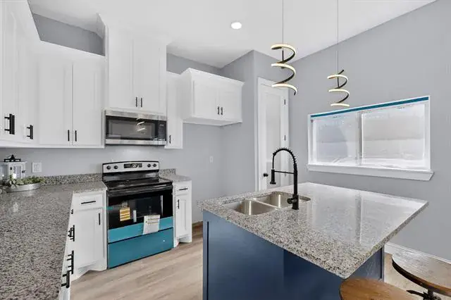 The home features a stunning, modern kitchen with stylish cabinetry, updated fixtures, and clean finishes that flow seamlessly into a bright, open layout designed for both everyday living and entertaining. Thoughtful renovations throughout provide a fresh, contemporary feel with today’s design touches.